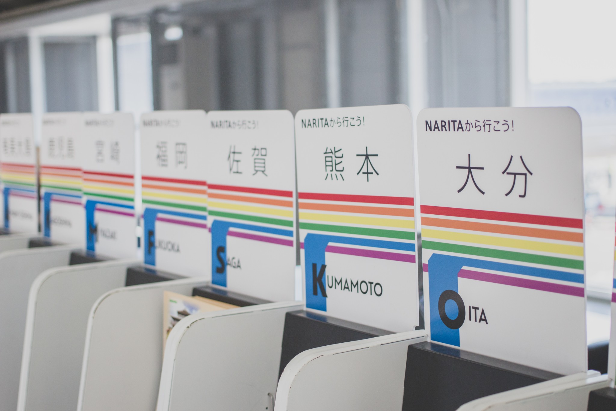 这是机场上的旅游宣传册架,不得不说这酷酷的日系简约的确比大黄大红要秩序一些。