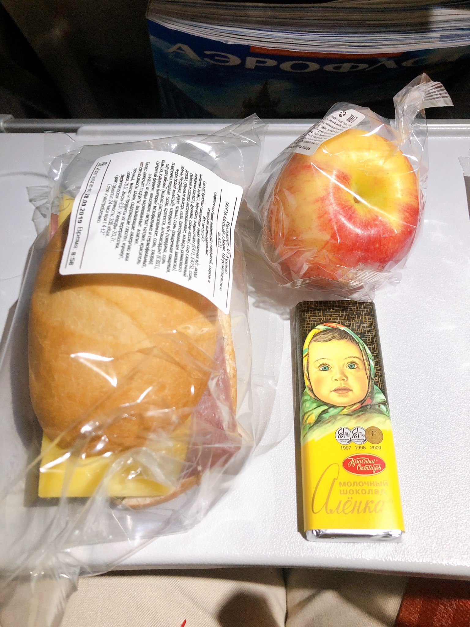 飞布拉格的航班提供早餐(我看就是夜宵),火腿芝士三明治,小苹果,巧克力,都是冷的,建议空姐发饮品的时候要一杯热茶,像胃部不太好的吃了就完蛋(肥庆:@肥静)