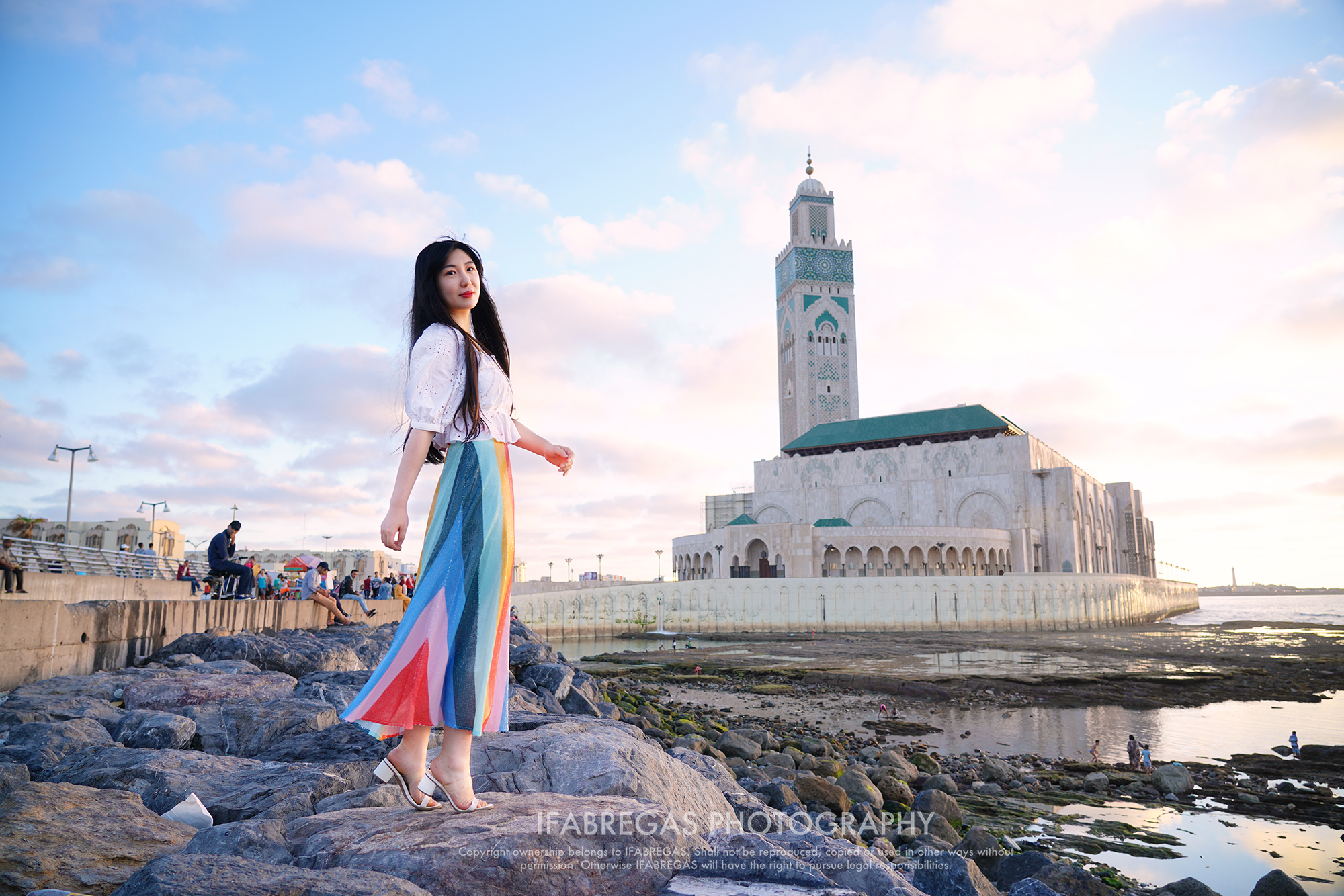 稍作整理后我们出门往哈桑二世清真寺,走在街道上,看着穿着长袍走过的行人,在夕阳下奔跑的孩童,才恍惚间感受到卡萨布兰卡的迷人之处。
