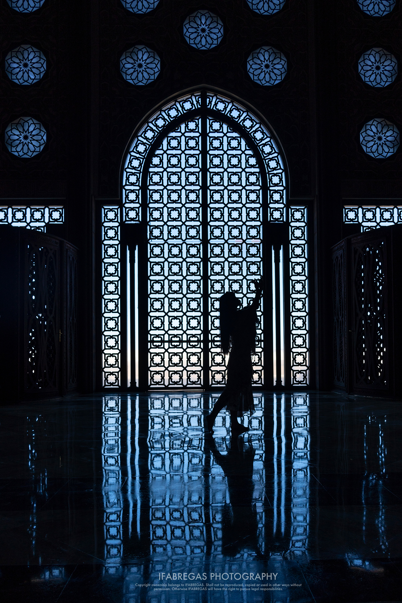 后来第二次到清真寺,终于等到参观时间。想拍剪影速度要快,前几扇门都有地毯,倒影出不来,走到最后倒数第二个左右有不铺地毯的,刚捏了一张管理员就大喊大叫,看样子是不让拍了,咱也不知道为啥,咱也不敢问。后来这个管理员对在其他门前拍剪影的游客也是大喊大叫地赶走了。