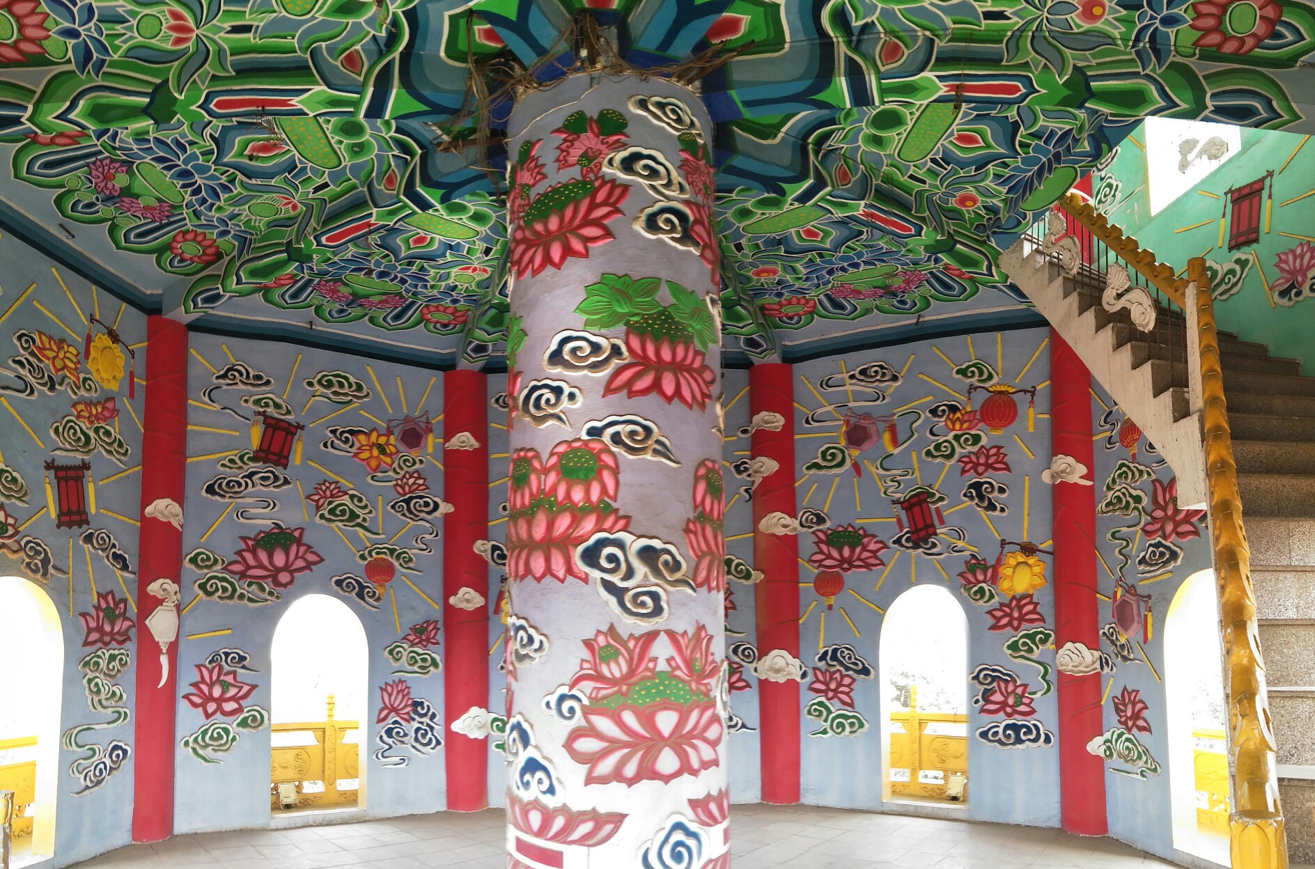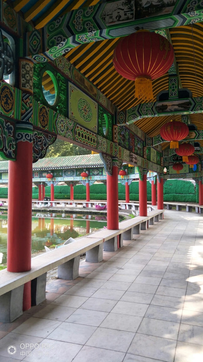 万宝海湖畔长廊绘有不同类型的彩画,构成传统的文化和民族艺术的画廊。