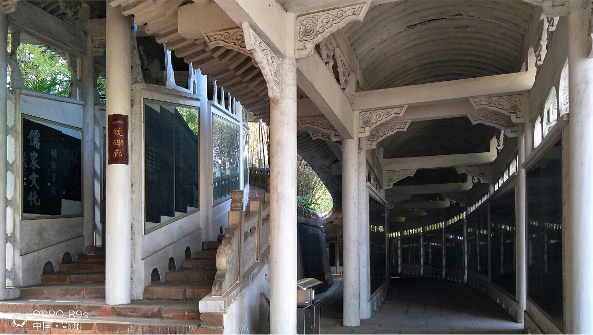 每一条长廊都是不同的文化内容,一号廊为儒家文化,二号廊为释家文化,三号廊为道家文化,四号廊为中华医药文化,五号廊为武学文化,六号廊为民族文化,七号廊为吴楚文化,八号廊为科学技术。