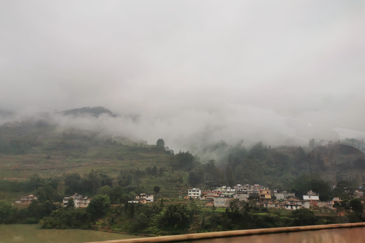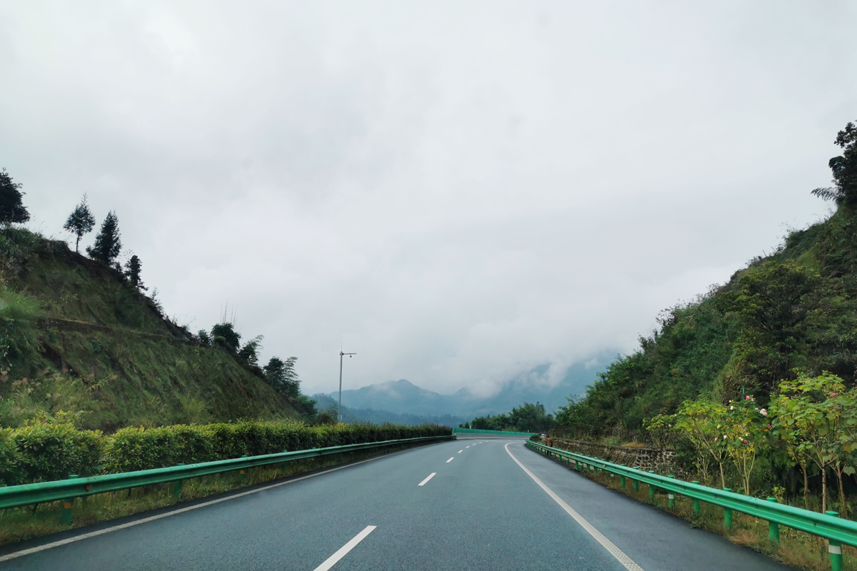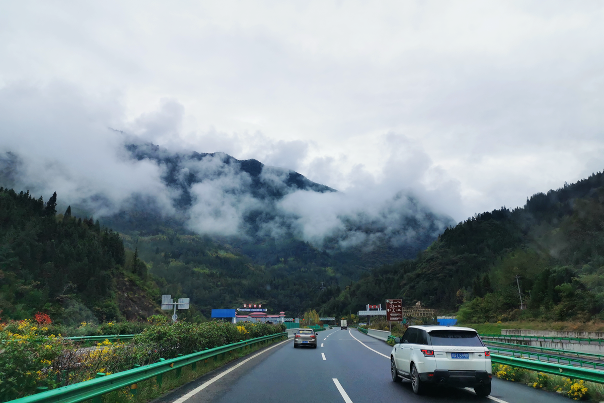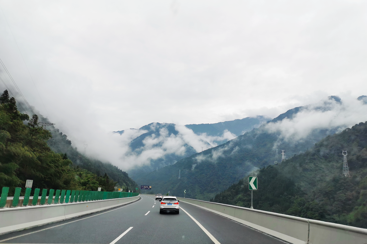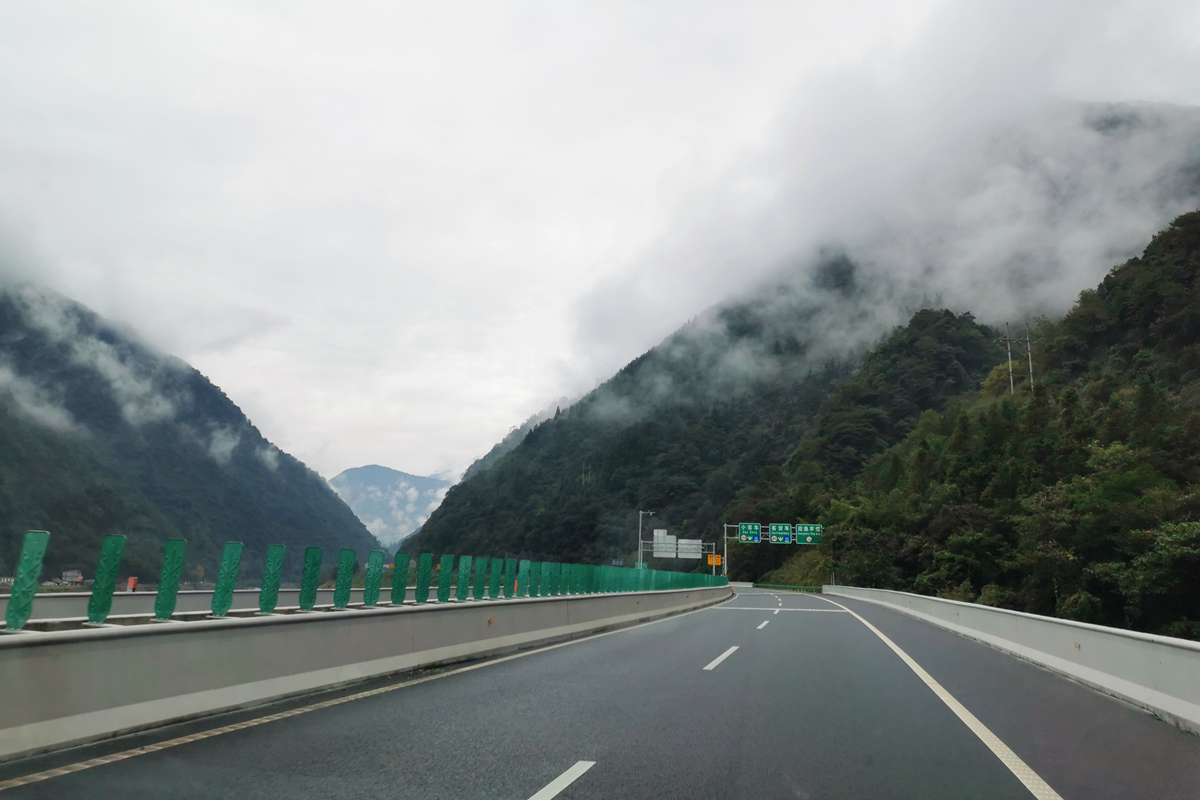 吃过早饭,沿着成雅高速继续前行,高速路一路向上,远山在雾中若隐若现
