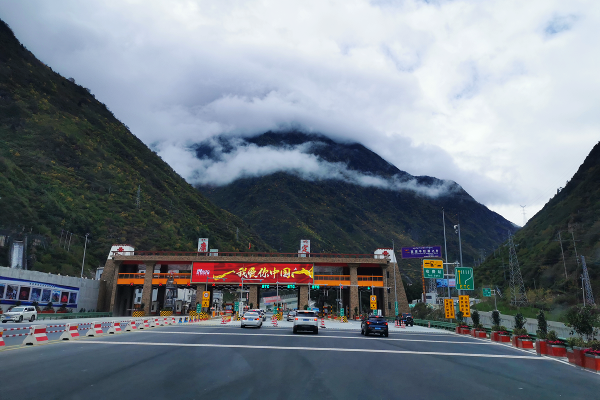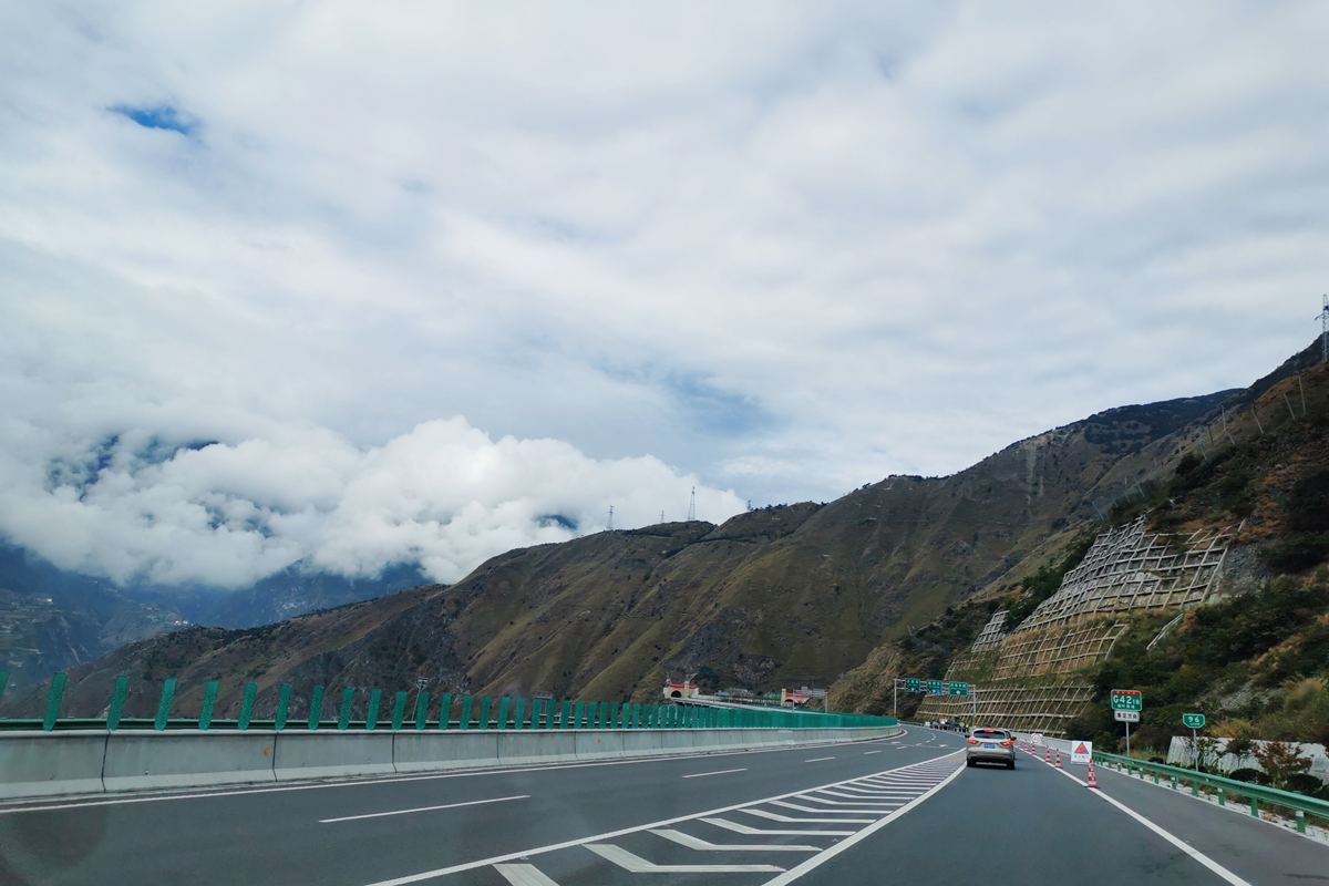 将近11点,历时4个半小时,我们也海拔500-600米的成都,爬到海拔2200的雅康高速康定出口。