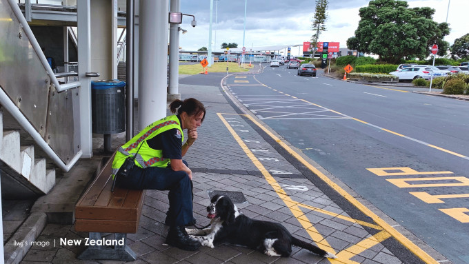奥克兰机场的稽查犬随处可见,品种多是拉布一类,这个品种在犬类里属于相当聪明的存在。当时还没有发生基督城恐袭事件,神态放松的安保人员牵着摇尾巴的稽查犬围着你转圈的时候感觉就像个欢迎仪式