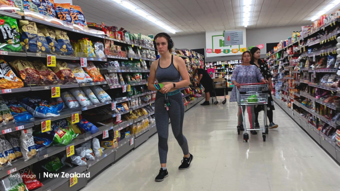寒气逼人的超市里,健硕的kiwi妹子是这幅打扮。