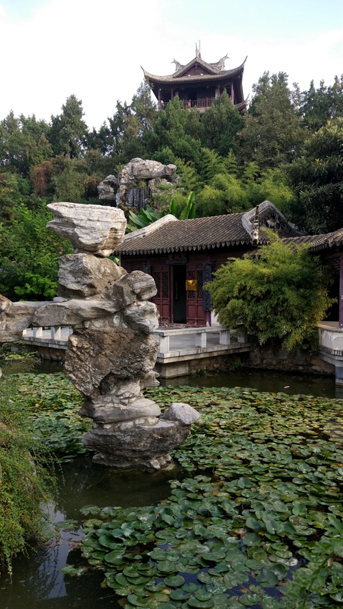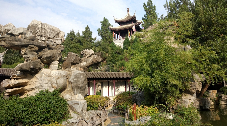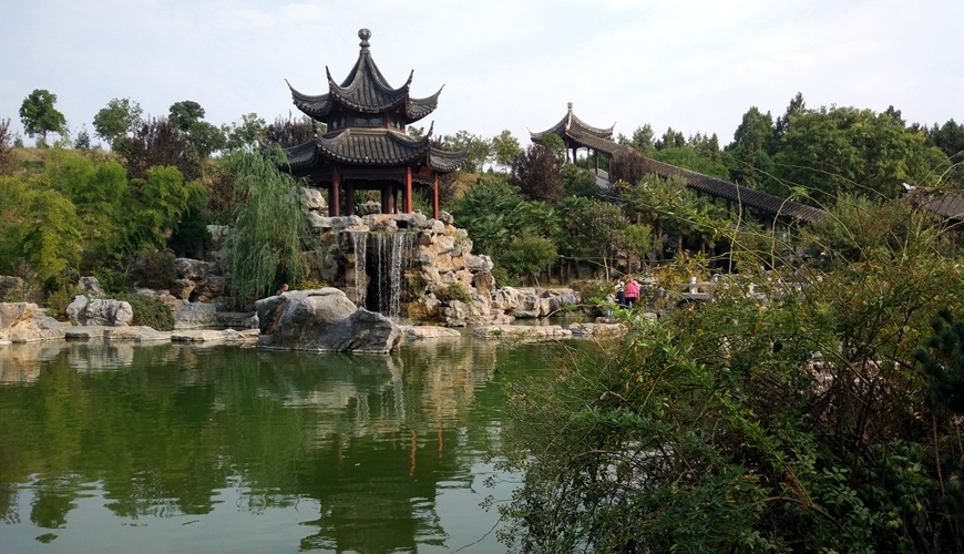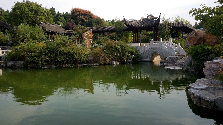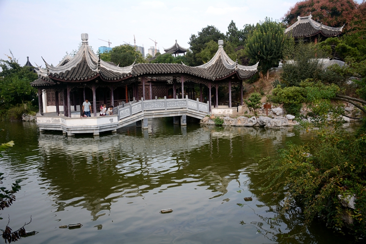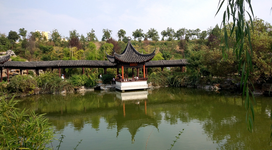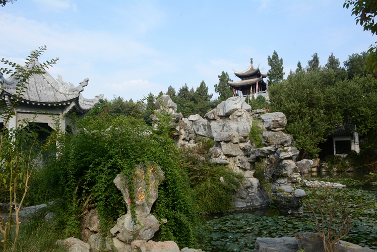百花洲位于花洲书院东侧,紧靠邓州保存最完好的一段明代古土城墙。重修后的百花洲,建筑虽为人工重造,少了些许历史的厚重感,但是处处也体现了山水相连、竹木掩映、庭院楼阁、小桥流水、曲径通幽的一派秀美的苏州园林风格,再现了范仲淹家乡的自然景色。