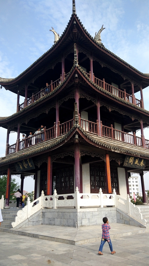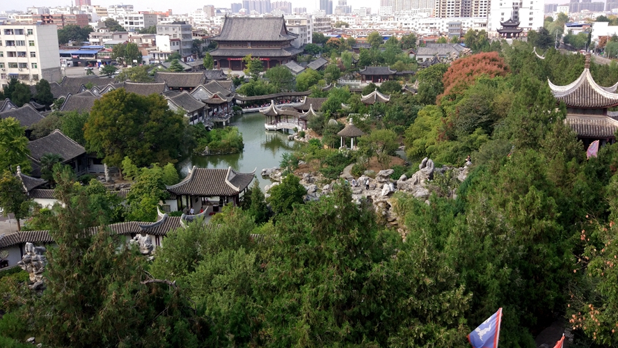 春风阁是花洲书院的最高点,登上春风阁整个花洲书院尽收眼底。只见各种古建筑隐藏在郁郁葱葱的古树中,与山湖洲林、小桥、亭台共同组成了一幅优美的山水画卷。