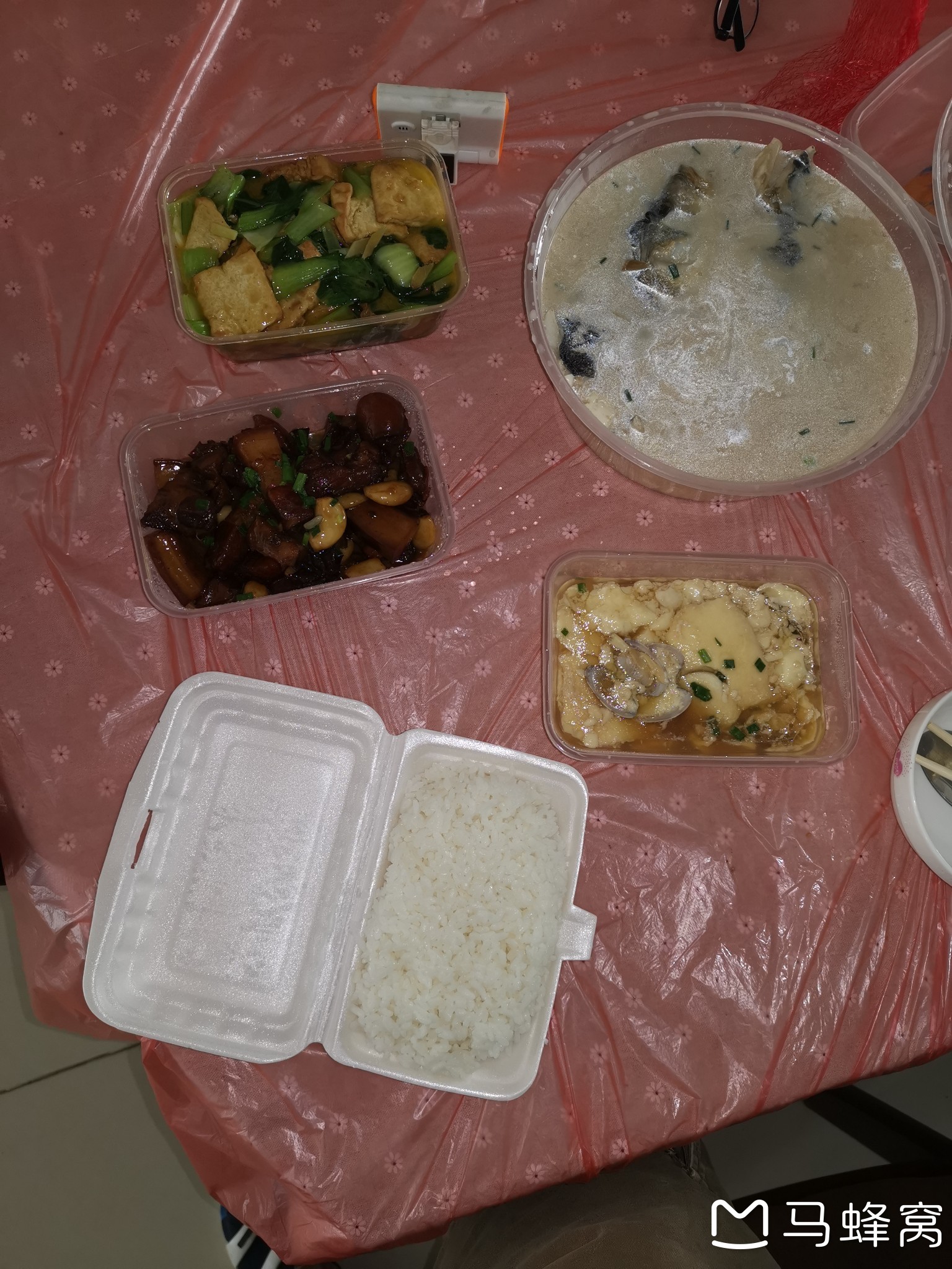 周六周日是一个人在家,从家附近伟杰土菜馆订的菜包括鱼头炖豆腐、青菜烧豆腐、红烧肉、蛤蜊炖鸡蛋外加两盒米饭就是我周六和周日的早餐和晚餐。加配送费一共145元,口味不错。放到大武汉,点这个分量的菜要2倍的钱,做出的菜肴还不好吃。