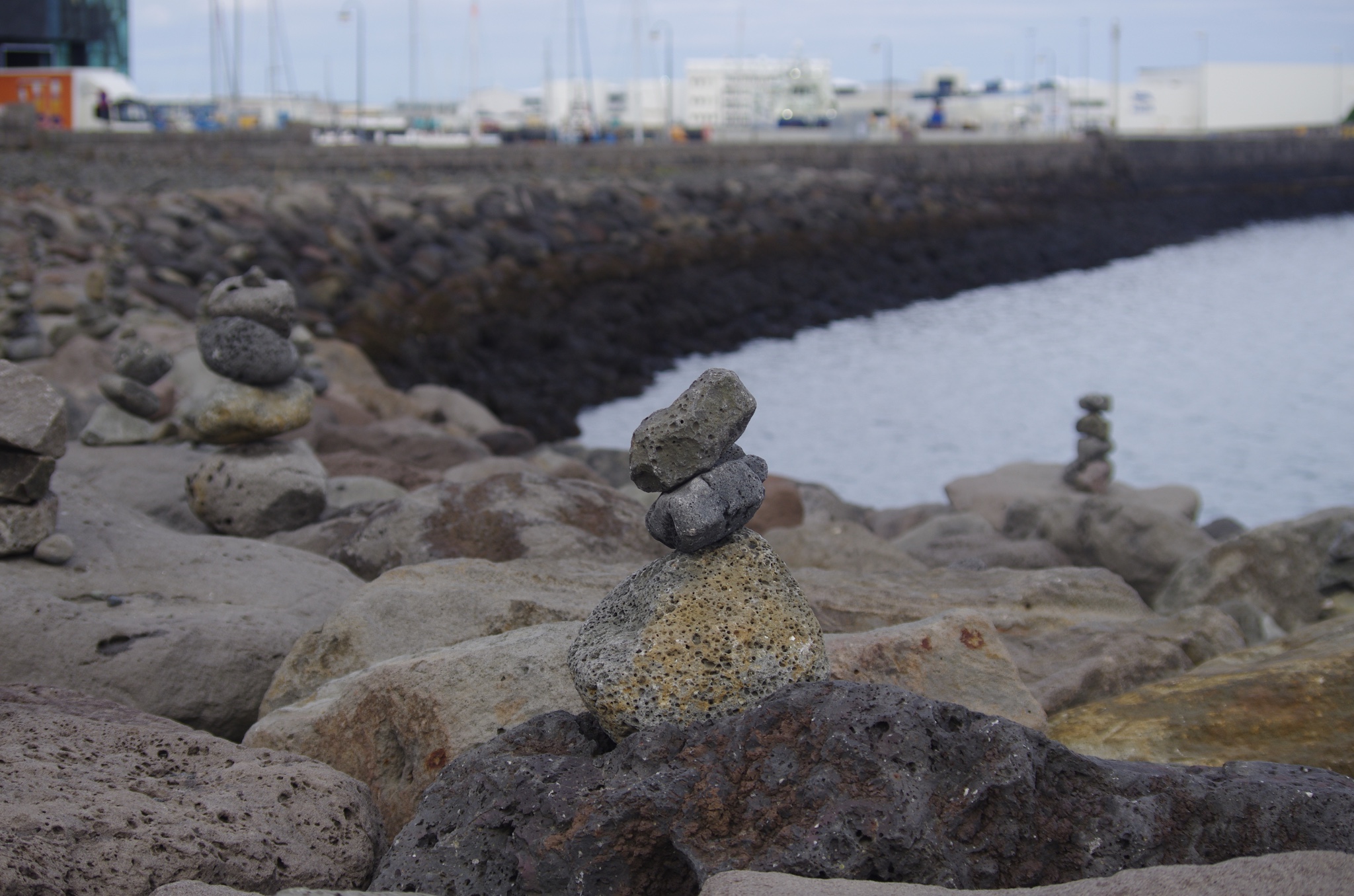 这边的小石头堆我之后晚上问了一下极光团的本地导游,她说这些石头像灯塔,看到这种石堆一定要往上再堆一块石头,不然会有不好的事情发生。然后我第二天赶紧到海边往每个石堆上都放了石头