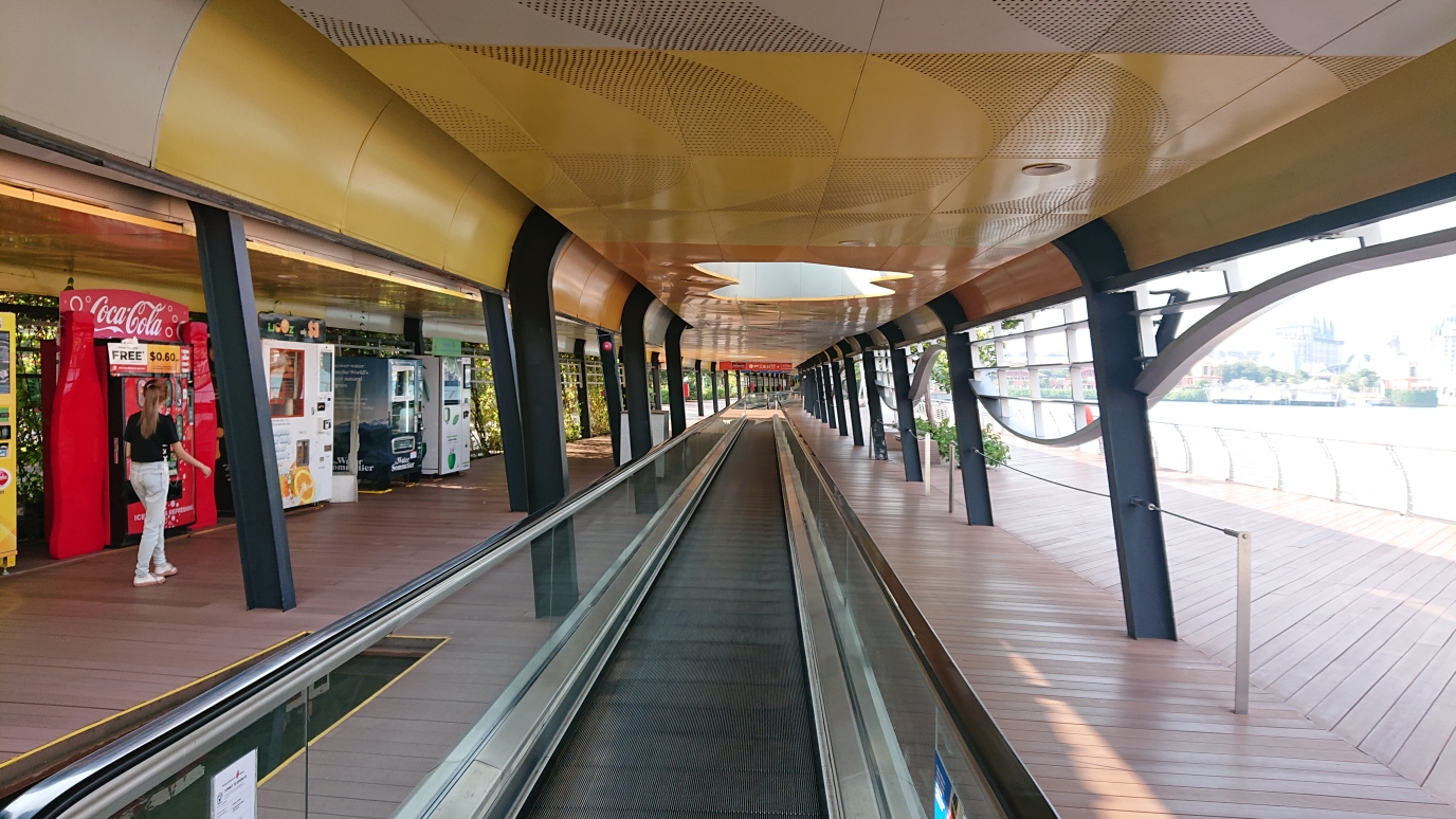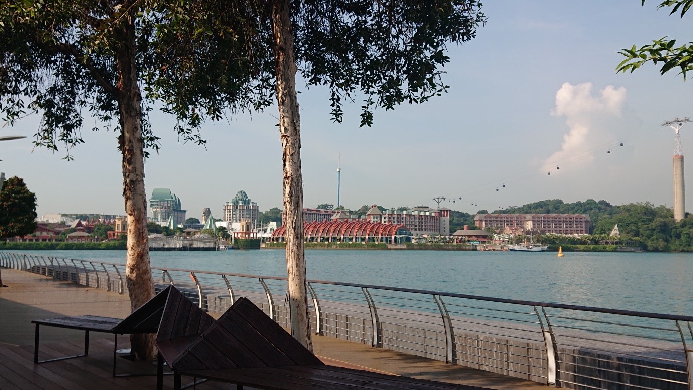 来到新加坡的第三天一大早就出发了,乘地铁到港湾站,出来后可以选择圣淘沙的捷运,也可以步行过去。建议可以选择步行,有一条通往圣淘沙岛的步行通道,沿途可以观赏一下风景,大约走个20分钟就到了。