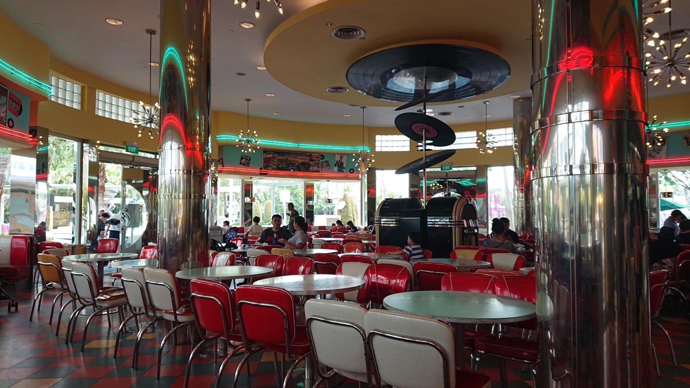 上午排队人都不多,所以玩了好几个项目,中午饭就找个快餐解决了,在纽约区域的餐厅。这餐厅复古美式风格,很喜欢。