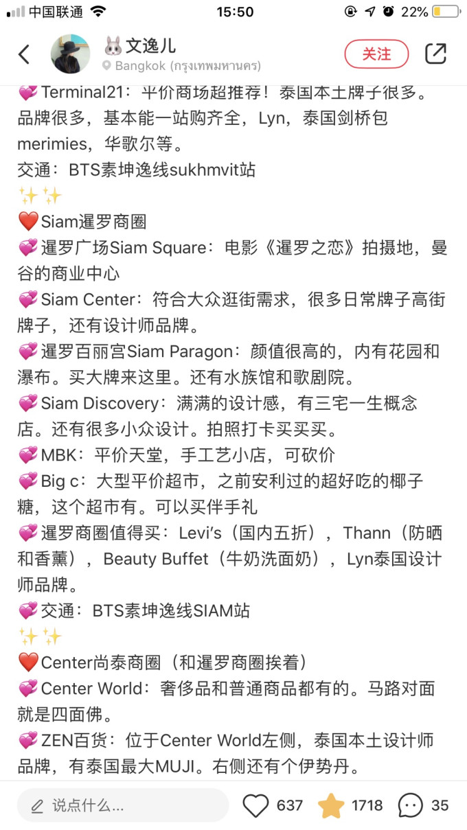 建议住在siam附近 也就是市中心 最好住在离BTS近的酒店 这样打车输入出发地点超级方便 省的语言不通找不到司机