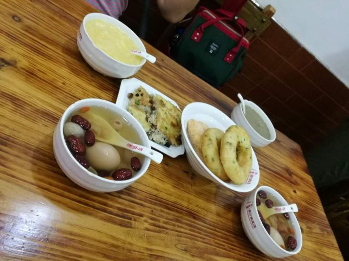 然后我们去吃晚饭。宾馆旁边有很多小饭店,选了一家粥店,可惜太晚了粥都没有了,大家就在还有的品种里各人点了些。我点的卤肉饭,可是没有多少卤,拌饭都拌不过来,连卤肉饭的标配卤蛋也没有。可能是快要下班了,服务员都有点不耐烦。