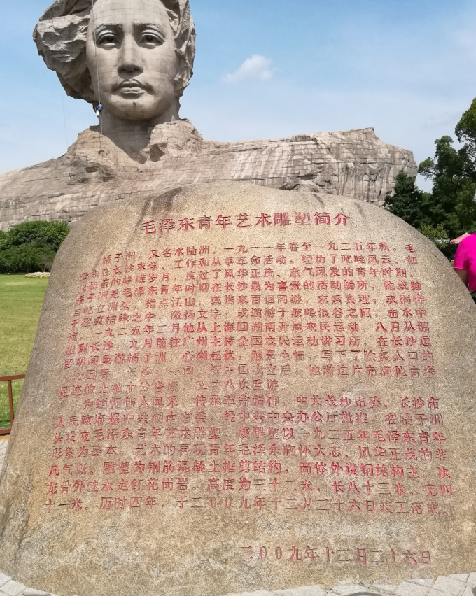 出了橘子洲地铁站就是观光车站,买票上车。橘子洲细细一条,还是很长的,游客基本都是到橘子洲头青年毛泽东塑像那里去的,半路上没什么人下车。