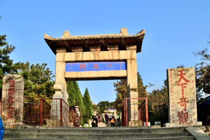 红门入口的登山步道是秦始皇封禅时开通的步道。这条路线主要是石阶路,需要步行从红门到中天门,一路经过万仙楼、斗母宫、四槐树、回马岭、壶天阁等众多景点,也是泰山上众多石刻较为集中的地带。历时2小时30分,终于徒步到达中天门,到中天门后继续步行历时2小时40分到南天门,游玩山顶,观日落,入住山顶。