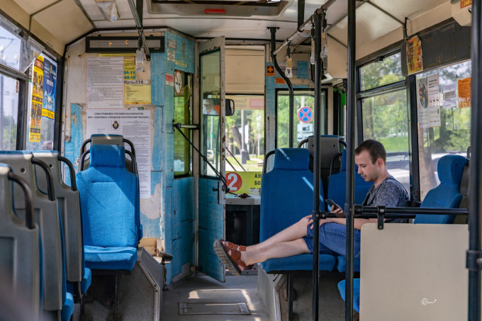 存好行李,我们开始研究怎么去市区。最方便的还是打车嘛,走到机场门外,就看到刚存行李碰到的人从出租车上下来,问他们怎么回事,他们说司机上车之前说500卢布,坐上车之后就变700了,于是他们就下来了。听到这里我和ivy果断选择公交车。那么现在问题来了,坐几路公交车呢?打开Google map,上面还真有路线,甚至多少钱都有。我们等得时候我就问了一下当地的一个少女,她用非常不熟练的英语跟我交流说,Google上给的路线要走一段路,如果从隔壁航站楼坐1号线,可以直接到我们要去的地方。谢过之后我们去了隔壁航站楼。还没走到公交车站,车就来了,我们快走几步,也算是赶上了。这个车真的是非常复古,还带售票员的。他们有个机器,付了钱会给你小票,然后中间还有查票的。票价是18还不是35一个人,我有点记不清了,毕竟对数字没什么记忆力。