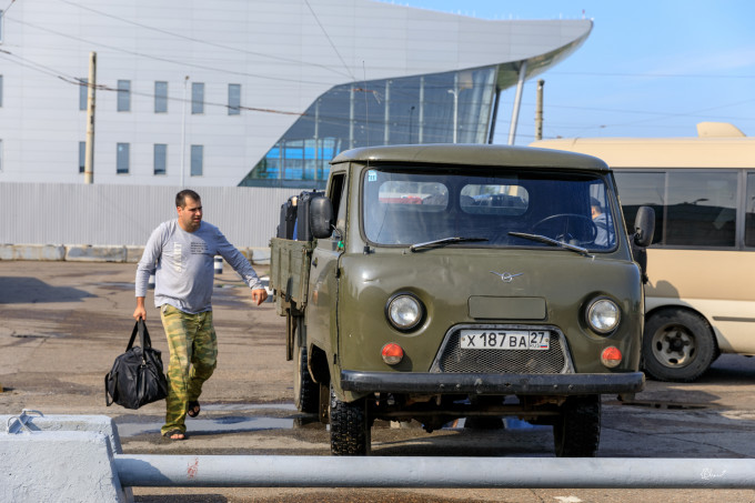 哈巴的机场转机要到另一个机场,好在不远,就在隔壁,走路20分钟。下图就是哈巴飞海参崴的机场。这个机场从外面看和火车站差不多,里面实际上也差不多。