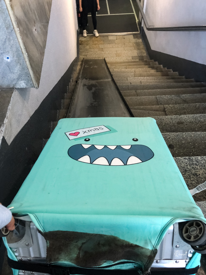 因为转机时间很长,我们打算寄存行李,去市区转转。行李寄存在地下,我们下楼的时候看到了这个像滑梯一样的设置,所以觉得应该是用来运行李的。实践证明,这个滑道,下去的时候很快,上来的时候又很不方便。