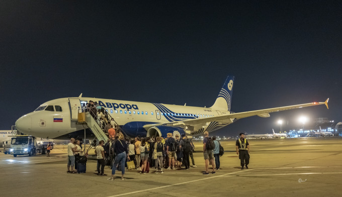 这飞机要不就不坐,一坐就是三连飞。我和Ivy从北京出发,第一站到达哈巴罗夫斯克,在这里有十二个小时转机时间,然后哈巴洛夫斯克到海参崴,然后海参崴飞勘察加。后来听他们说可以从哈巴罗夫斯克直飞勘察加的。其实飞机没有想象中的可怕,还挺稳,起飞和降落的时间比较短。唯有一点,就是飞机上呼唤铃按了没人理,我两次都这样,最后叫住了过往的空姐才得到帮助。
