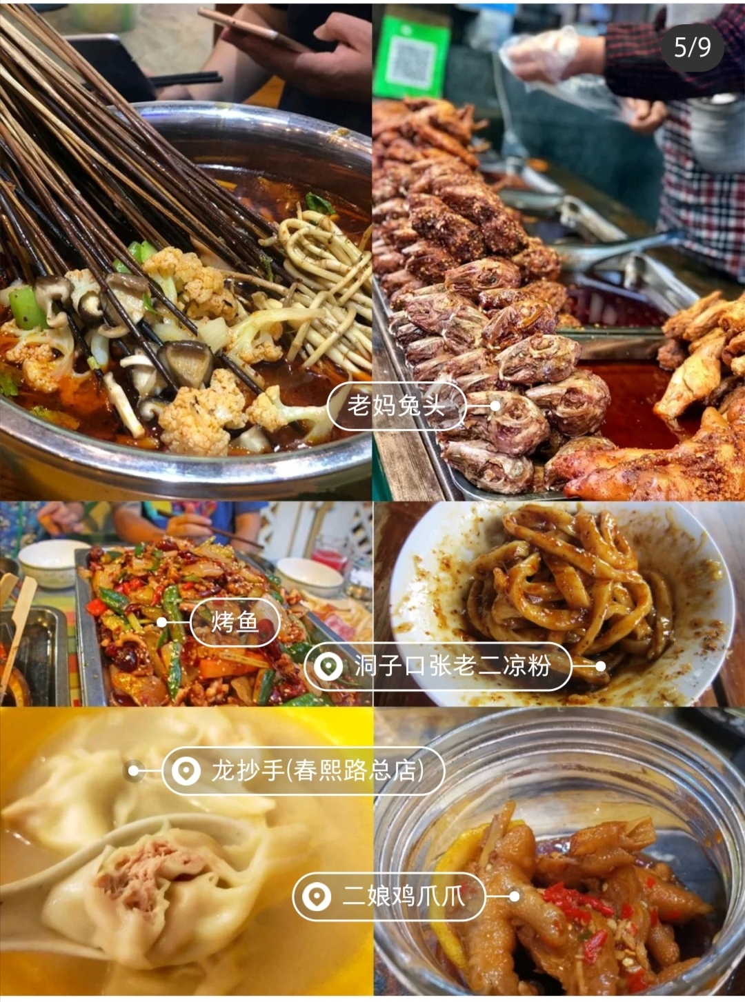 2. 廖记棒棒鸡:连锁店,无骨凤爪,凉拌兔头、夫妻肺片,招牌,下酒菜