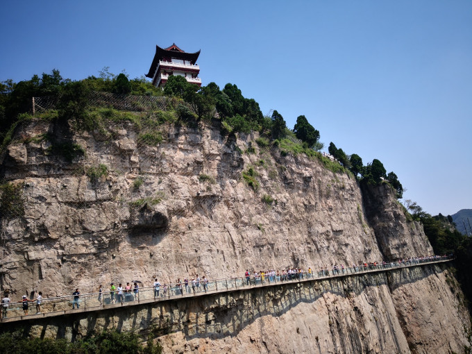 总长400米的玻璃栈道修建在海拔1080米的山腰上