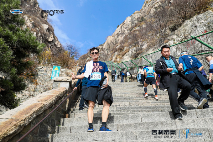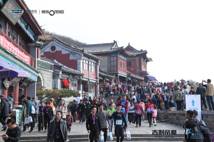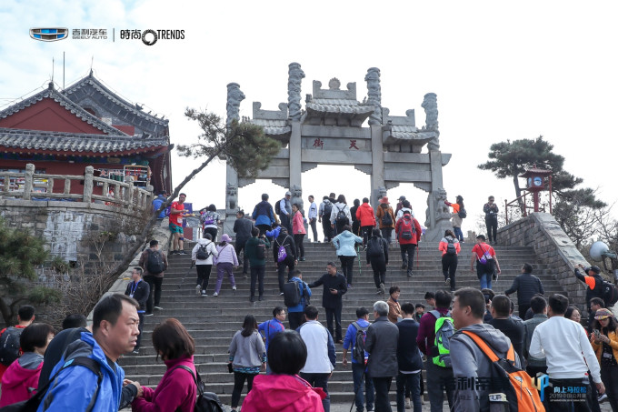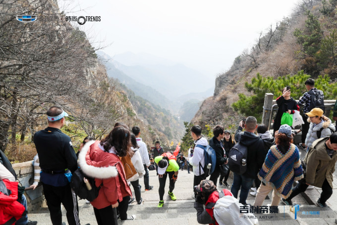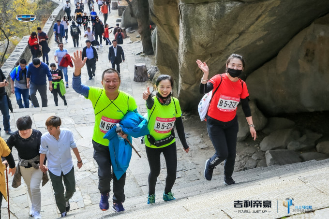 SS没去过泰山,也跟我们一起过去玩。赛前现场的气氛很好,主办方邀请了夏伯渝、孙杨、李晨、许飞等名人助阵,开幕式结束后,选手们分批乘坐景区接驳车到中天门(比赛起点)。