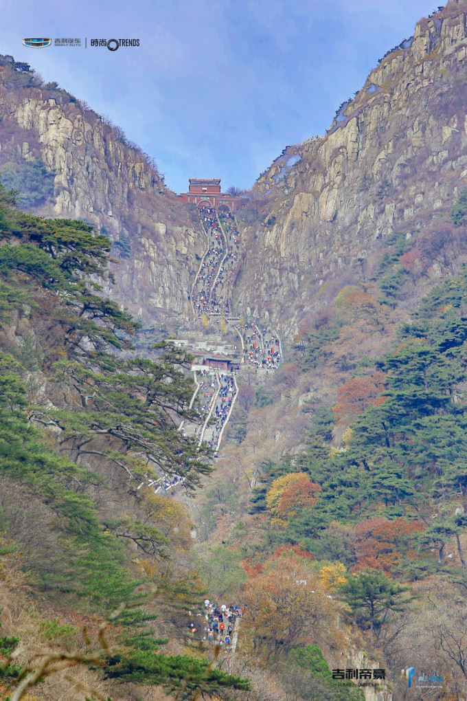 这是我们第一次组队参加登高比赛,我最担心的是他俩可能会跑太快崩掉。起跑之后慢跑拾阶而上,这时候游客已经很多了,我们需要时不时地变换方向、见缝插针甚至停下才能继续前行。如果早点出发就好了,阻碍少成绩也许还能提高一点。