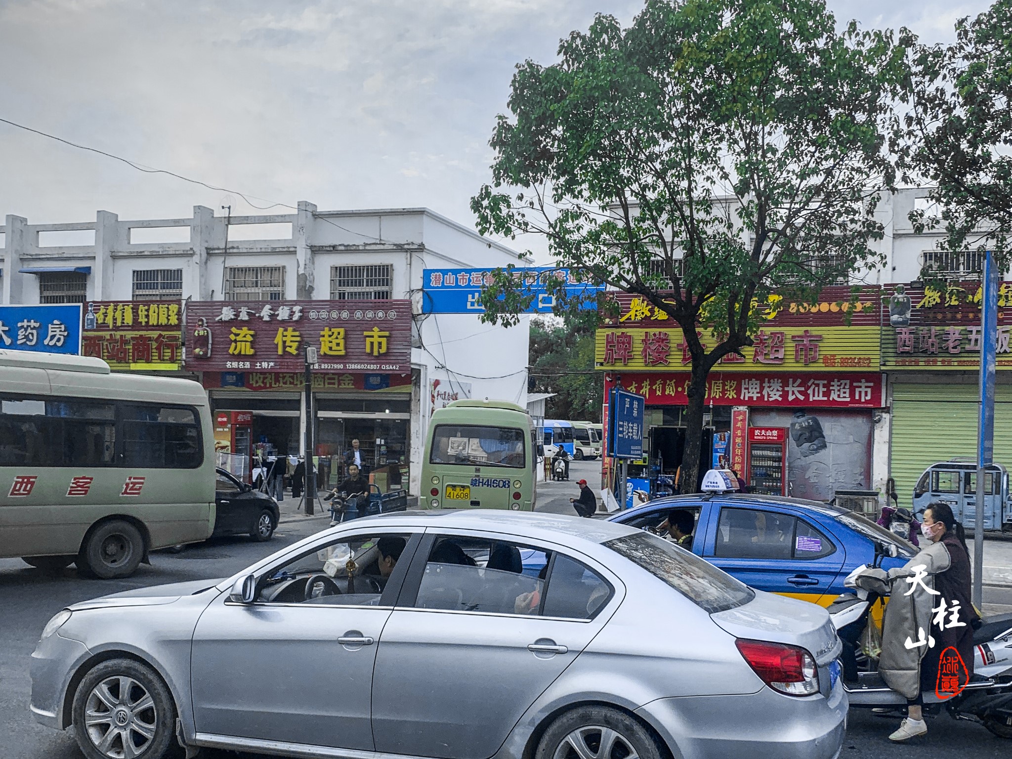 驾驶员问我去哪里,告知我潜山有两个站:潜山西站和潜山站。从安庆的班车直接去潜山西站。从潜山到天柱山的班车也是从这个站开。下图就是抓拍的潜山西站门口,感觉好小。