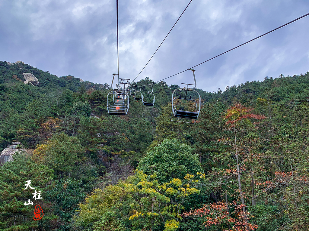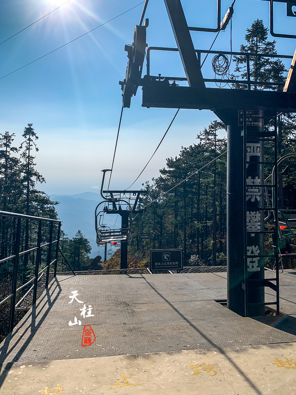 天柱山索道是敞开式的,坐上去让人有点小怕。索道上山时候,正好碰到一对情侣乘索道下山,小妹妹隔空问我,你一个人上来怕不怕。
