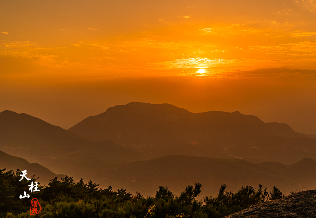 2、住在天柱山庄附近,看日出地点是丹砂亭,看日落是六月雪,大概都是十多分钟路程。