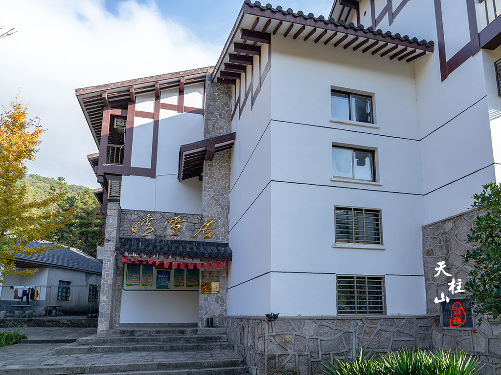 天柱山庄,国营,价格300元起,条件还可以,距天柱山索道上口约500米;到六月雪(看日落)、丹砂亭(看日出)大概十分钟;