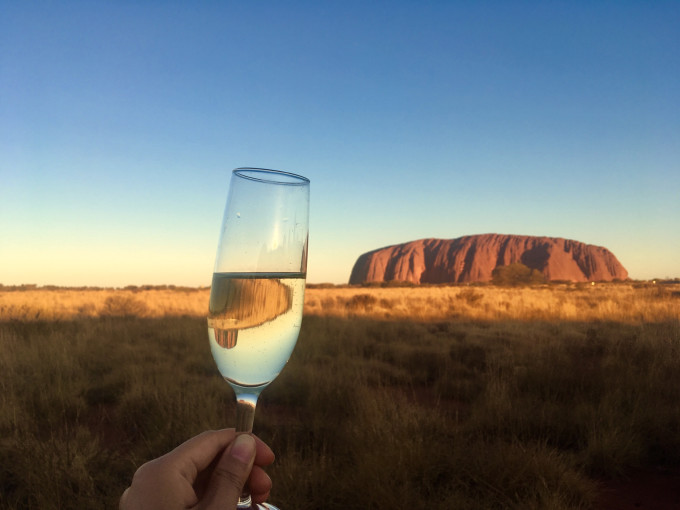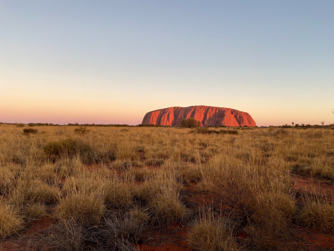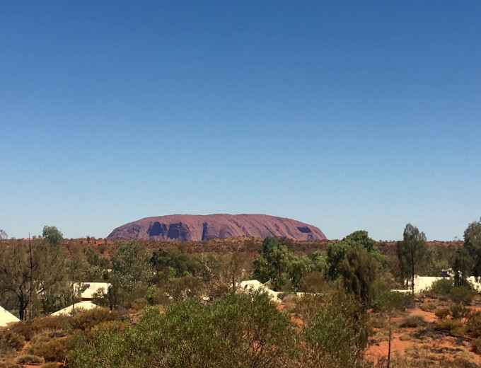 由于沙漠非常平坦。在很多地方都能看到乌鲁鲁岩,在酒店观景台看的表少遮挡,这时候的乌鲁鲁有点紫红色的感觉。