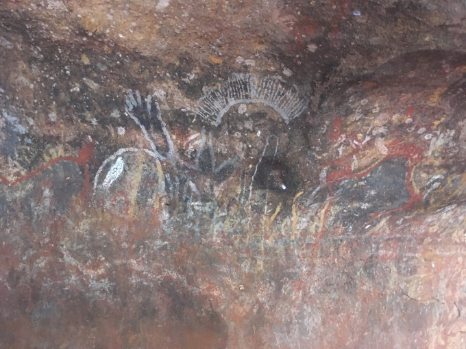 土著人的壁画当然是必看的。我只记得那个同心圆图案是代表水池,对土著人来说,特别是生活在沙漠的土著人,水源真的是太重要了。他们很珍惜任何被发现的水源,而且不同家族都会不约而同地为别人着想,不污染,不滥用,可持续发展。就像导游说的,一个小错误或者一个小自私,都是不止一条人命的代价。