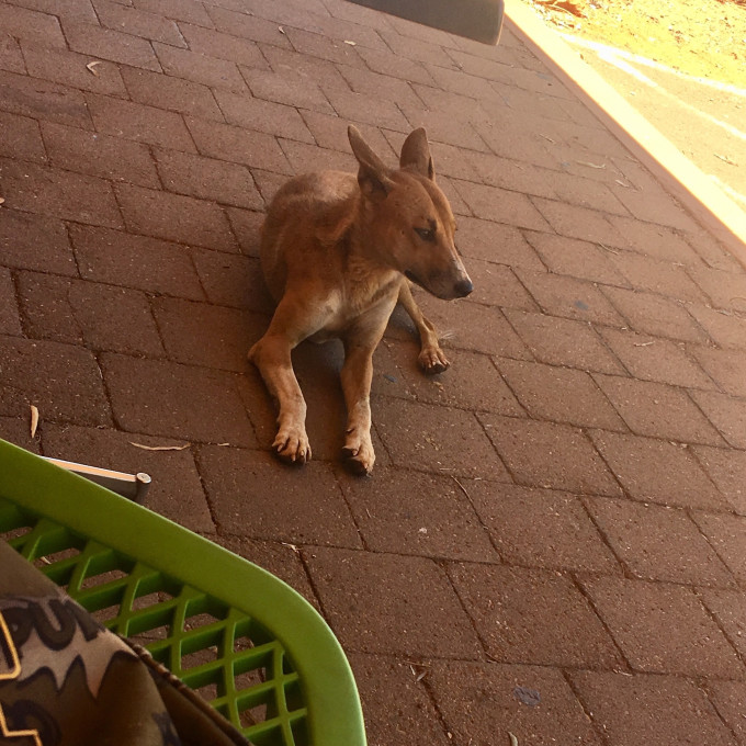下山之后到了服务区,吃午饭的时候,一只Dingo跑来了,趴在我们旁边。感觉它好乖巧呀,而且好瘦呀,但是不能随便跟野生动物互动,所以我们就一直假装淡定,假装没看到它。