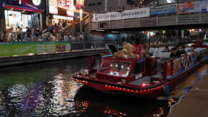 大多的游客照都在桥上和格力高合影,哈哈我们在小船上换一个更近的视角合影咯