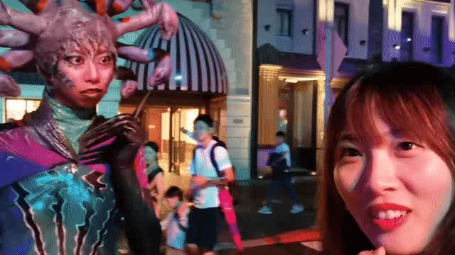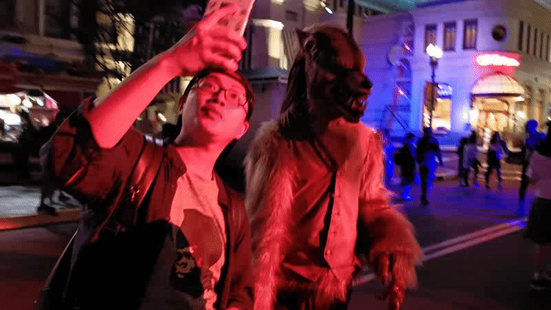 第一次感受万圣节,气氛十足的同时把我吓得不清啊,可是两个男人冲上去合影的骚操作我是真佩服