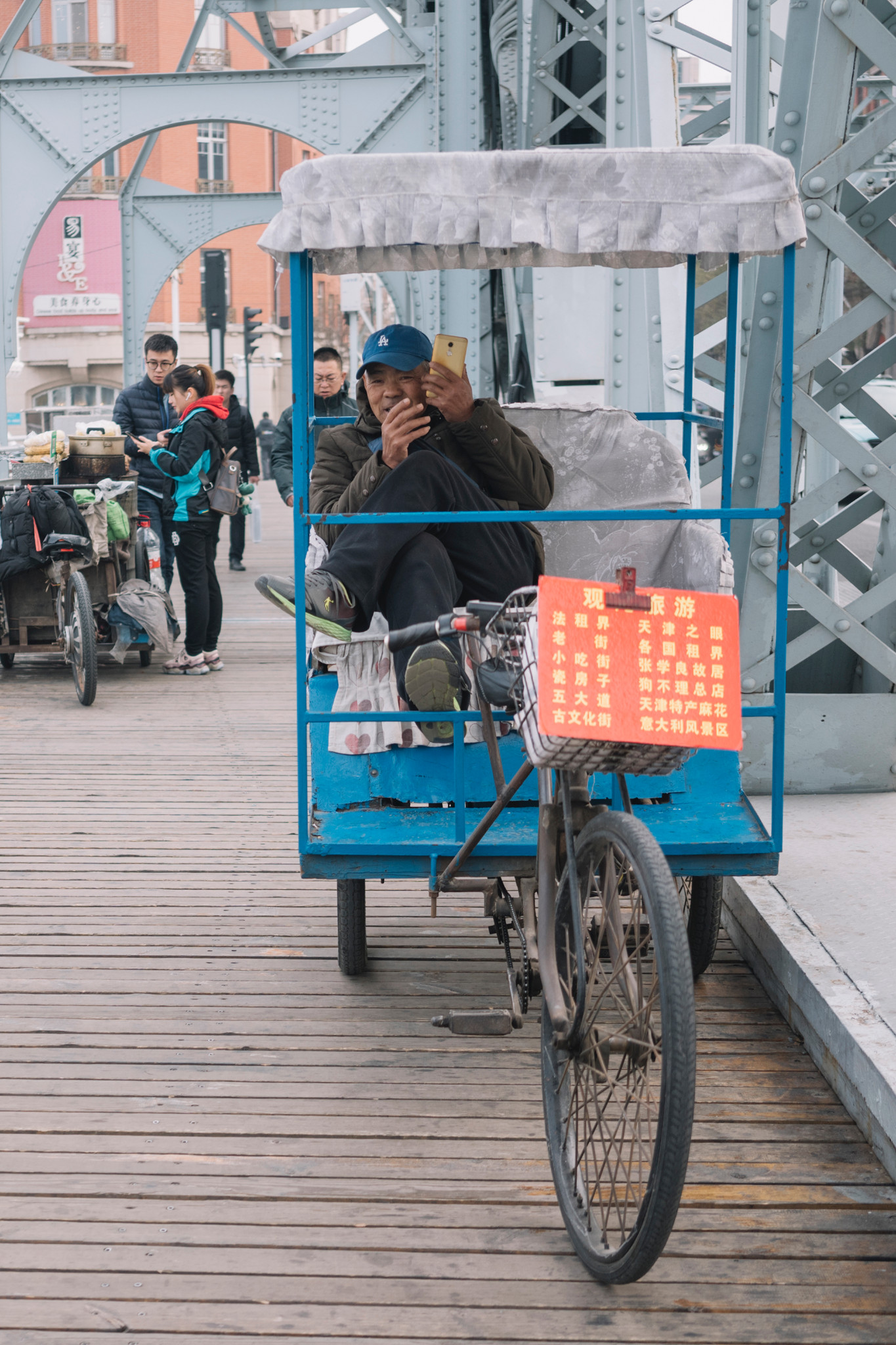 大叔一口流利的天津话问这我:小伙子,要不要坐三轮车