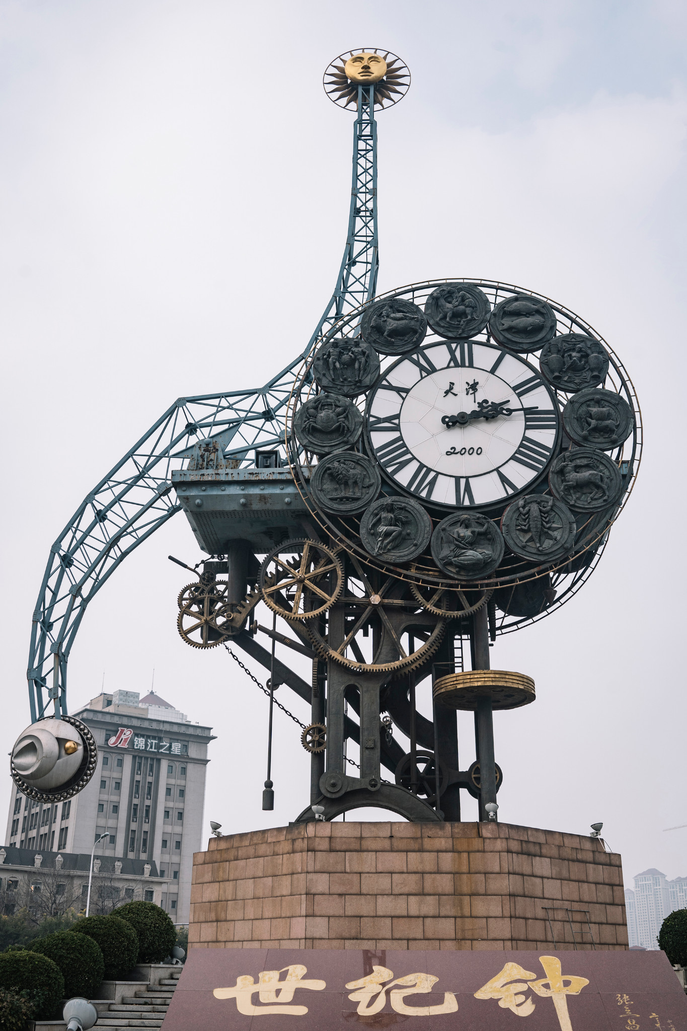 走过解放桥,在桥头能看到大大的一个环岛,环岛中心有一座钟,叫做世纪钟