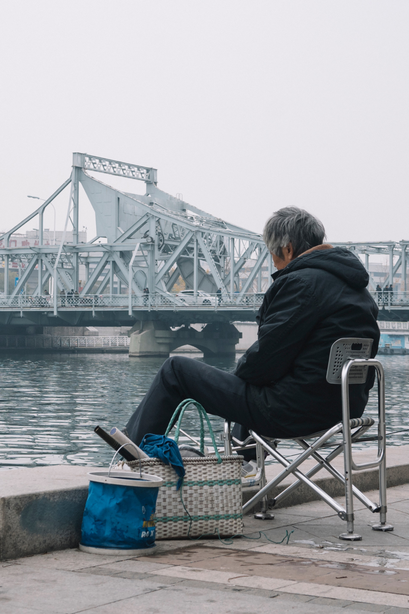 下了桥,沿着河岸线,看到好几个老人在桥头钓鱼,虽然天气有些微冷,但是这就是她们的晚年生活吧