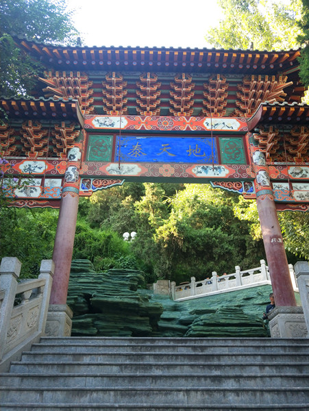 牌坊显示了明清白塔山建筑群奇特的布局:在山顶建代表“地”的地藏寺;而在山下建代表“天”的玉皇阁。如此布局呈现的是《易经》泰卦的卦象,是能天地交合而万物通泰、生养畅通的
