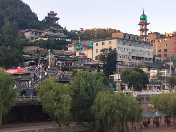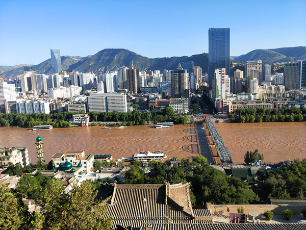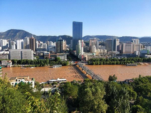 站在黄河南岸,举目北望,黄河铁桥,白塔山公园建筑群,白塔寺浑然一体,尽收眼底,有“河桥远眺”之称