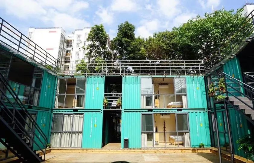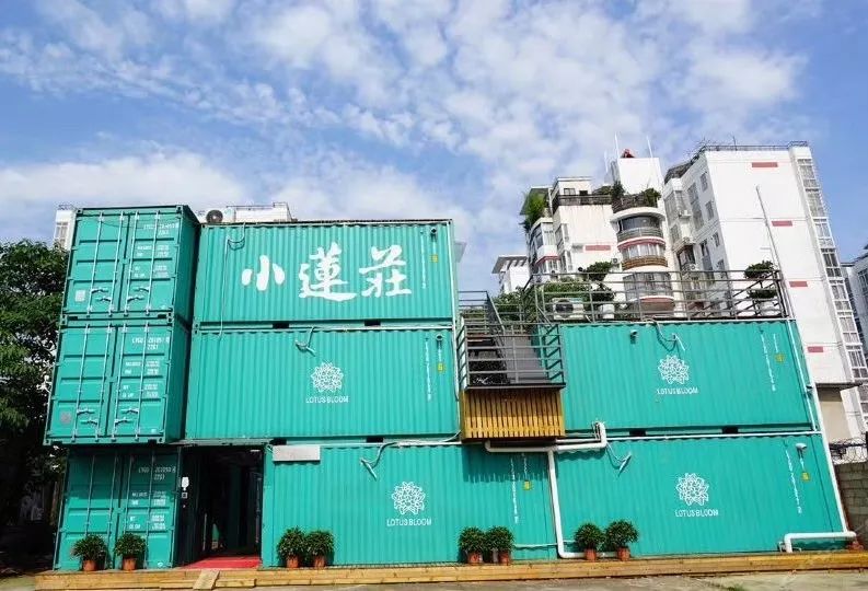 没有遇到一见钟情的人,却让我遇到了一见钟情的——小莲庄集装箱青旅,真不愧是桂林十大网红民宿之一。和它的名字一样清新淡雅,淡淡的湖蓝色集装箱叠拼在一起,让整个民宿充满文艺气息,让人不禁放慢脚步。后院则是老式的砖混房改建而成,楼下有一间玻璃屋,和两棵挺拔的大树,在玻璃屋可以喝茶、看书、弹琴、听音乐,在树下发发呆也很惬意。还有三只奶牛猫,温顺可爱,一点也不怕生,最有趣的是,小猫会跳到睡莲缸边用爪子玩睡莲叶子。我们都以为它是想吃里面的鱼呢,哪知和小金鱼玩亲嘴,小金鱼也配合着冒出头。不吃鱼的猫这真是个奇迹。在这里住了三个晚上,感受到了管家式服务,内心里头踊跃着家的温暖。再来,必定还住这里。