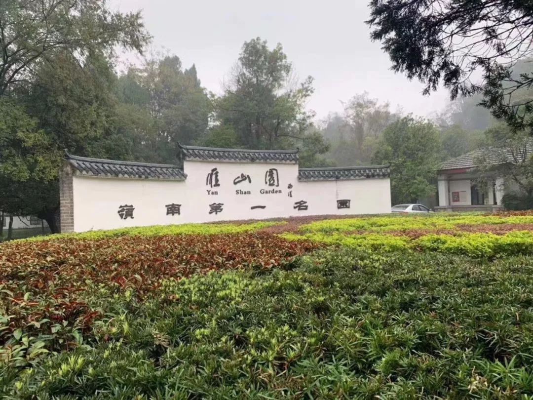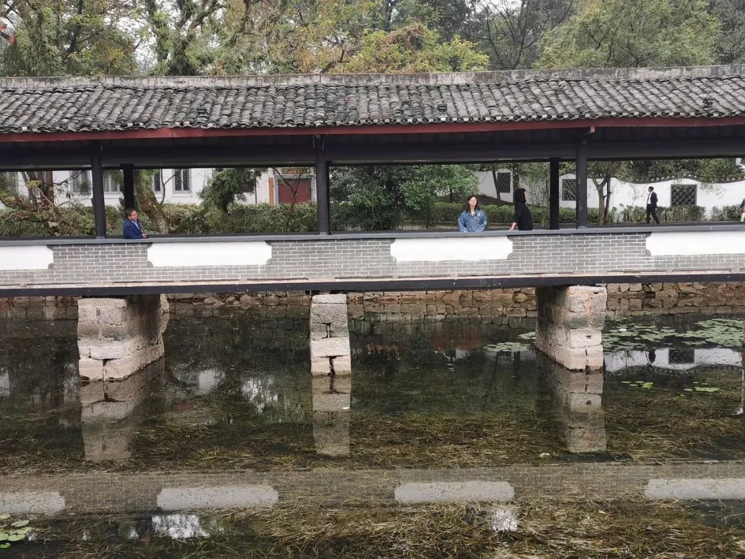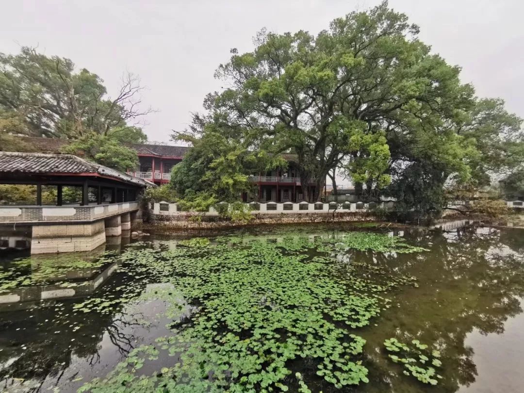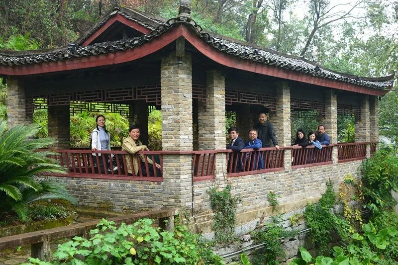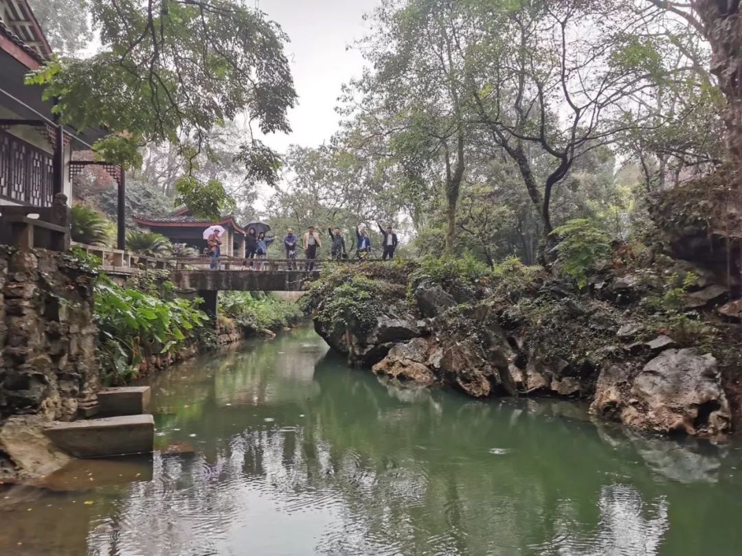 当然,要说最值得留念的还是要属雁山园了。雁山园,一园看尽桂林风景。晚清时期,广西桂林士绅唐岳的私人别墅,周恩来、胡适、孙中山、李四光、马君武等名人也曾在此地驻足停留。那日,我们一行人撑着伞伴着小雨走过一个又一个的回廊,穿过一座又一座的亭台楼阁,细细品味了一番园子的景致。郁郁葱葱的古树奇花,山水的毓秀,与园中环境自成一体,霎时觉得这里充满了灵气。方竹山有一处天然石洞叫相思洞,洞口石壁上有雕刻,刻有十二花神的画像,很是精美。曲径通幽,真是一步一风景,一景一陶然。我们在水榭中央做了停留,在此处的回廊稍作休息。四望,虽然天气不佳下着小雨,但是古树亭台的倒影,依旧清晰的在湖面上映出一幅幅美丽的画卷,真令人心旷神怡。园中还有一棵千年古樟树,枝繁叶茂,据说是棵神树。旁边是一个书院,有学生正在上课。不禁又感叹,人杰地灵的地方,这里的学生也好幸福呀!园子很大,有很多地方正在修缮,所有我们并没有完完全全走完整个园子。那会子,我还和霞姐开玩笑说,后宫佳丽三千住在这儿都还有多余的地方哩……