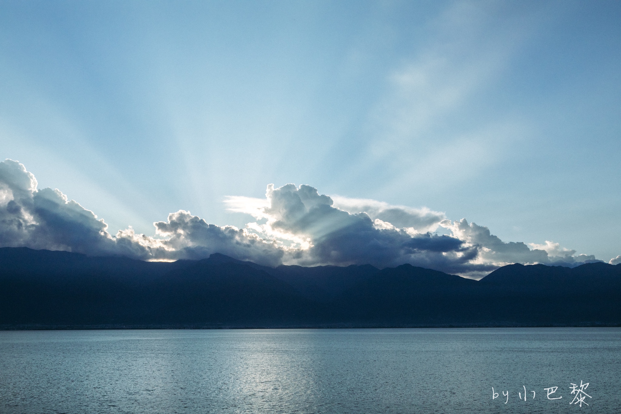 第一天傍晚,就在海东酒店的阳台上,遇见了洱海的耶稣光。