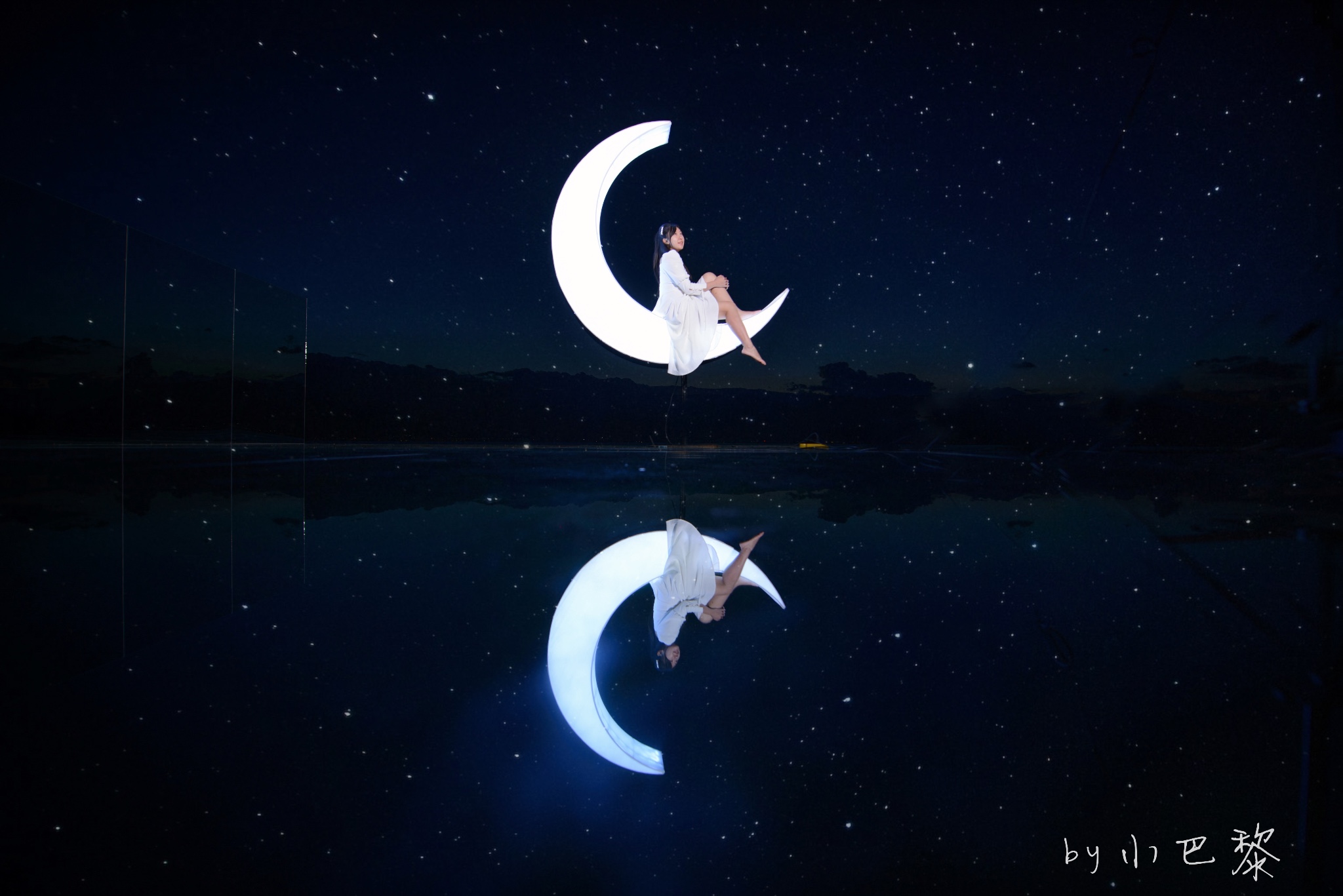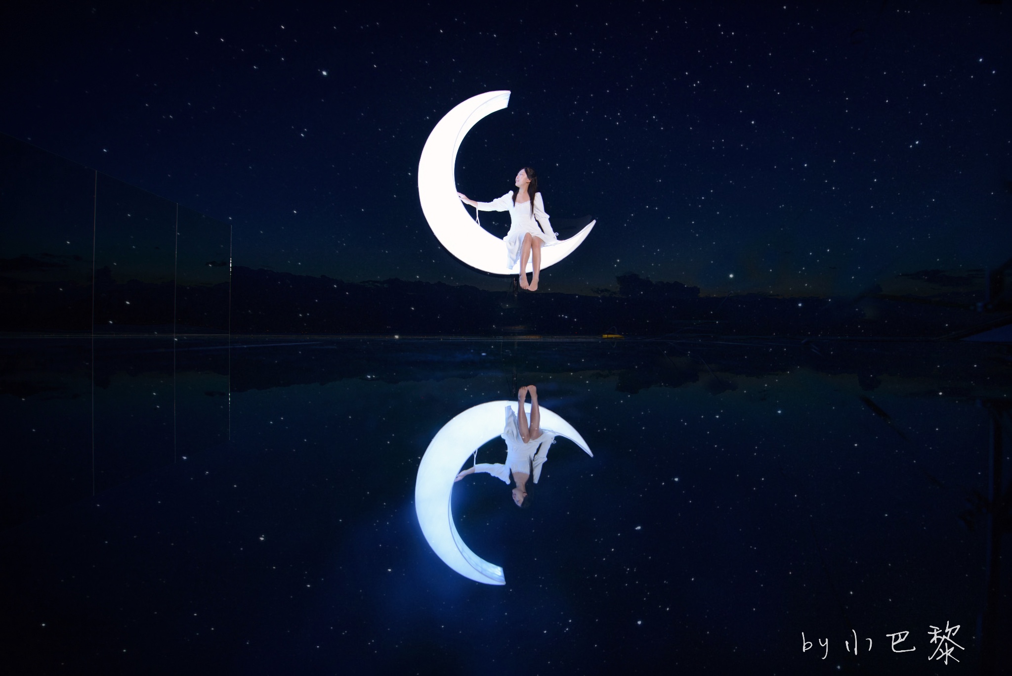 还是白天的天空之镜,晚上换成了月亮。