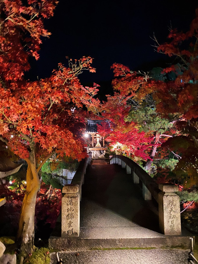 据说是京都赏夜枫最美的地方,永观堂原名禅林寺,园内种植了3000多颗枫树,夜晚寺庙里开了灯,枫叶们也显得格外的美丽,所以吸引了一大波游客来观赏打卡拍照,很多日本当地的学生们也来此处游览!
