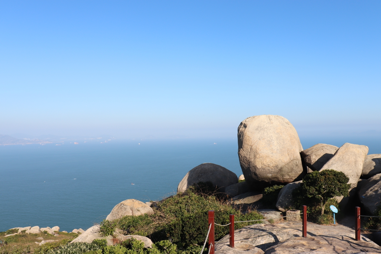 真是哪哪都离不开爬山的节奏,沿着常规登山路线登上伶仃峰大概需要一个小时,一路都是水泥路,山顶下边有个观日亭,一般要去伶仃峰看日出的,需要在日出之前登上此处,从码头过来大概40分钟左右。本人表示并不想看日出,看个日落就行,毕竟不想早起(゚Д゚)ノ(º﹃º )
