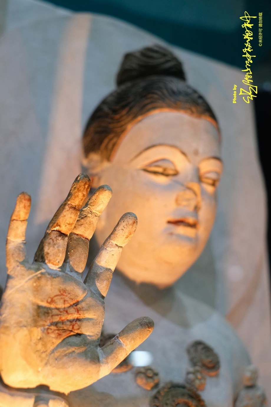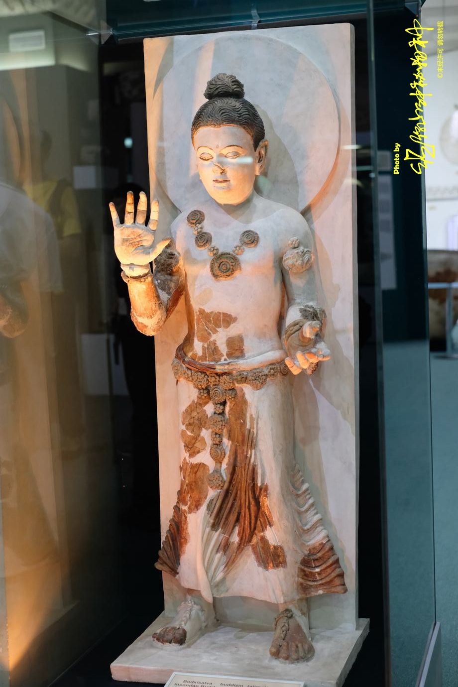 其实汉传佛教早期塑像跟这个复原的作品非常类似,我怀疑是参考了中国的作品,但是细节就很有特点,比如这个施无畏印的右手手心还画有法轮,我在国内没见过这种做法