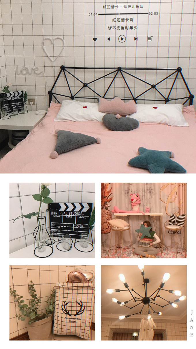 一进房间,哇,太粉嫩粉嫩,太暖和,太满意了吧,很in风,东西根本来不及放下,先是拿出手机一顿狂拍
